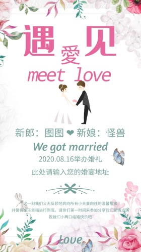 结婚典礼绿色清新浪漫邀请函模版
