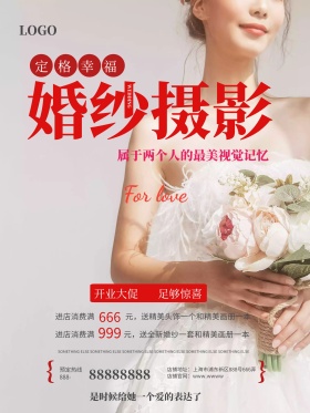白色丝绸唯美婚庆婚纱摄影玫瑰花促销海报