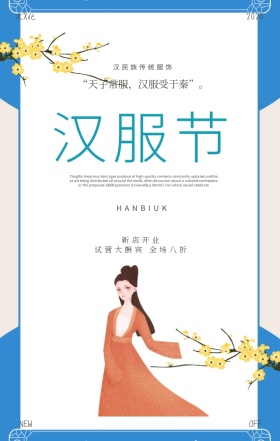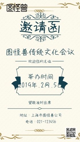 蓝色白色月亮花朵中国结传统文化会议邀请函